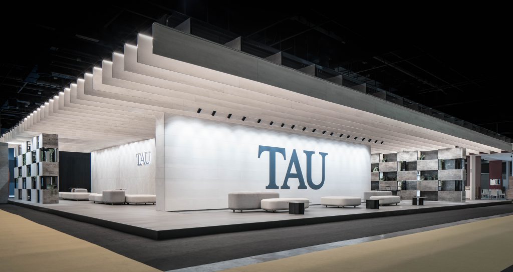 Para la construcción del nuevo Stand de TAU han sido utilizados más 30 toneladas de peso y 2000 m2 de cerámica, de los cuales 1000 m2 estarán elevados y suspendidos sobre los visitantes al Stand. Todo ello para conformar un nuevo concepto de espacio expositivo. Un lugar de convivencia, de encuentro y comunicación.