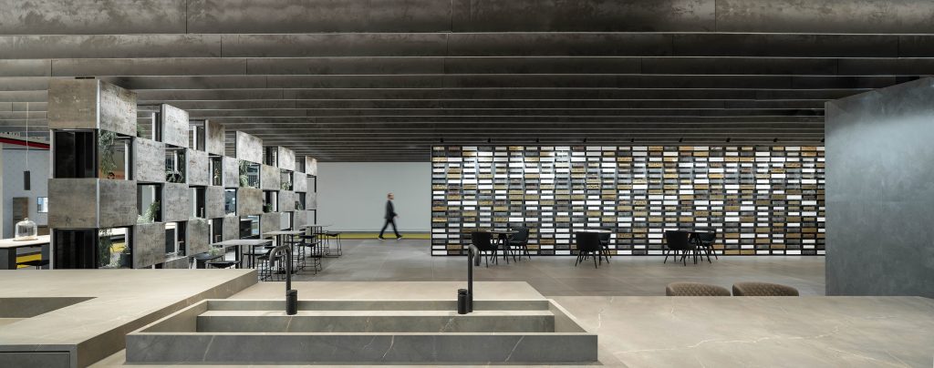 Además, y con el fin de poner en valor la cerámica como elemento único y vertebrador del proyecto, se han utilizado piezas cerámicas de diferentes formatos que permiten generar desde planos opacos hasta paramentos casi transparentes que parecen desaparecer. Todo ello creando más que un espacio de muestras, un espacio sensorial de dualidades. Peso y levedad. Opacidad y transparencia.
