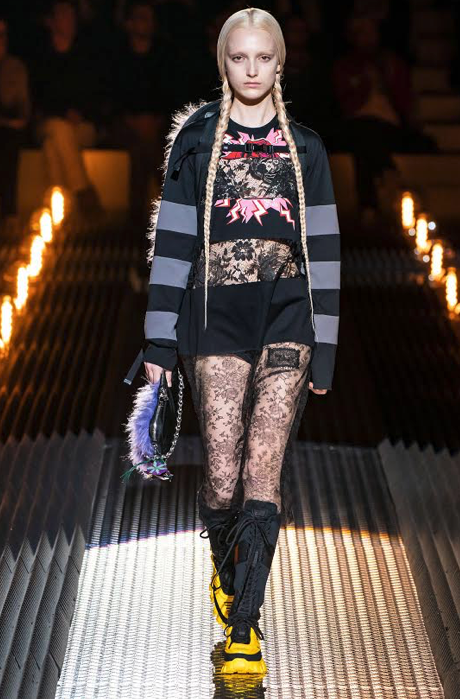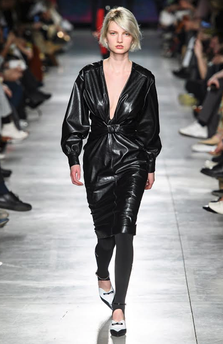 La firma nos presenta total looks en polipiel, camisetas con volúmenes (especialmente en hombros), estampados de corazones, los colores negro y rojo, estampado de ajedrez, el rosa fucsia, estampados bohemios a todo color que nos recuerdan a la década de los 60, botas futuristas, abrigos largos a doble color y trajes de inspiración masculina.